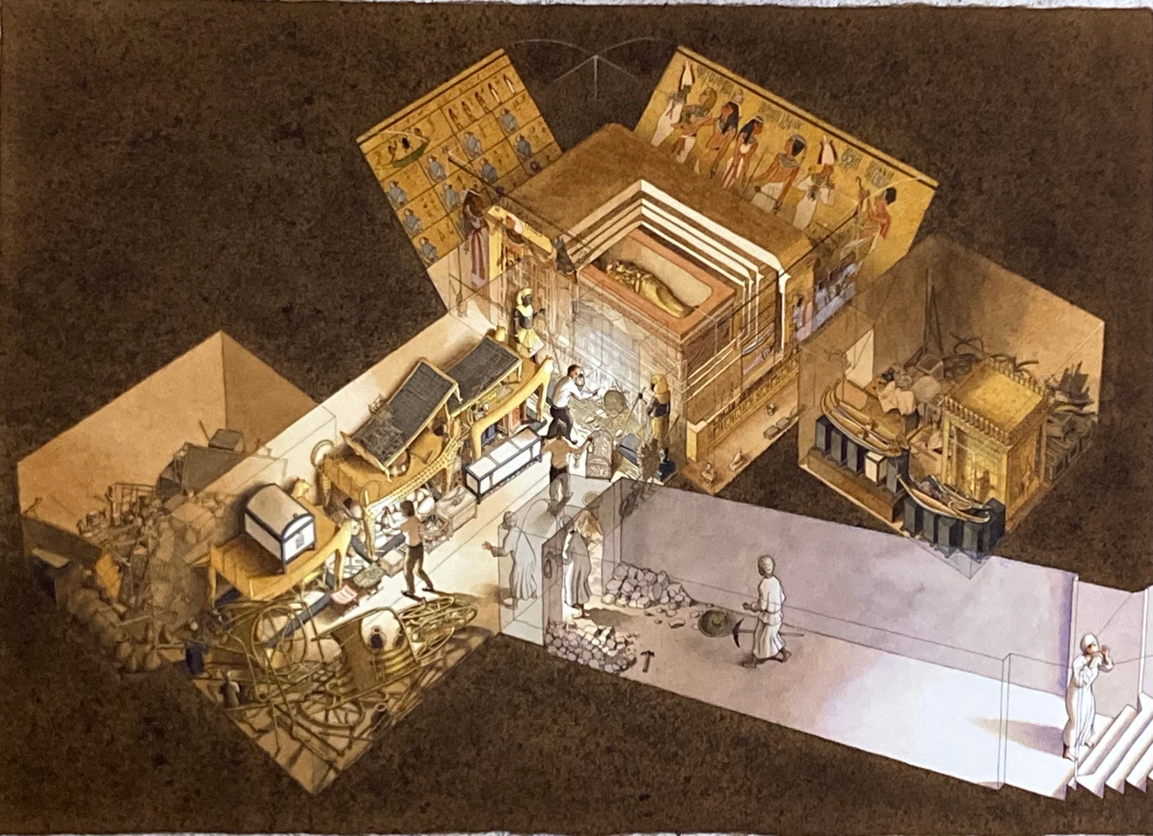 ハワードカーターによって発見されたツタンカーメンの墓の、発見当時の再現図です。